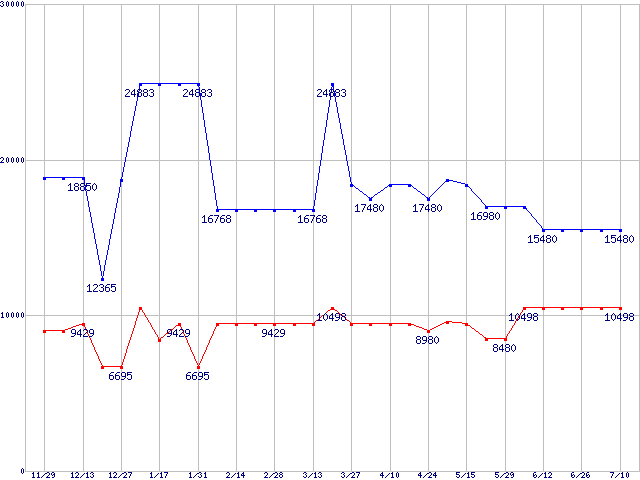 | [↑前グラフ]: | PC4000(DDR500) DDR SDRAM DIMMの最安値推移 |