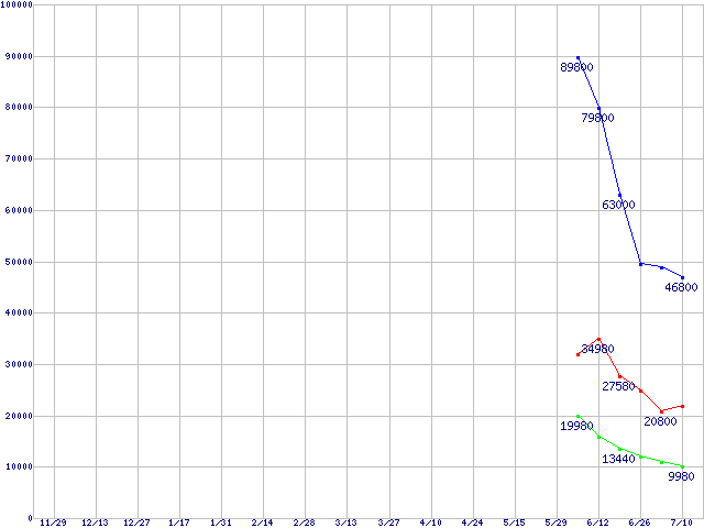 | [↑前グラフ]: | PC2100(DDR266) DDR SDRAM DIMM(CL 2.5)の最安値推移 |