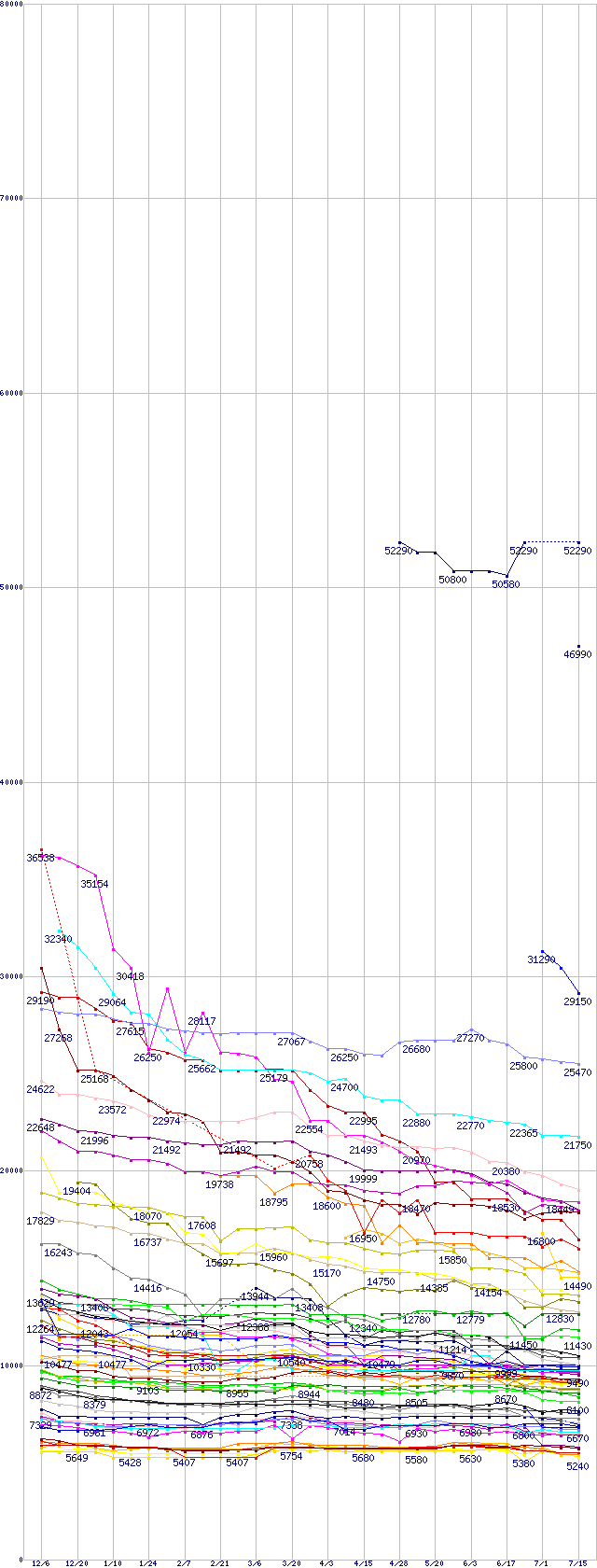 ※製品名をクリックすると個別のグラフを表示します ※点線部は販売店が確認できなかった、または調査データがないことを示します |