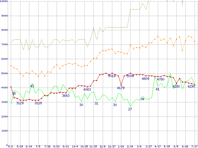 PC133 SDRAM DIMM CasLatency=3の最安値推移
