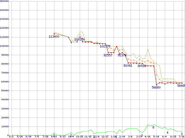 | Opteron 246(2GHz) リテールパッケージの価格推移 |