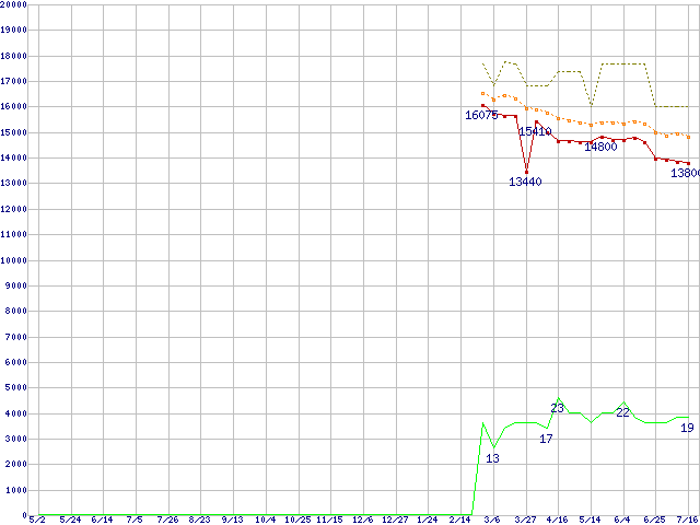 Socket 478 (FC-PGA2,FSB 533MHz,L2 1MB,Prescott)の最安値推移