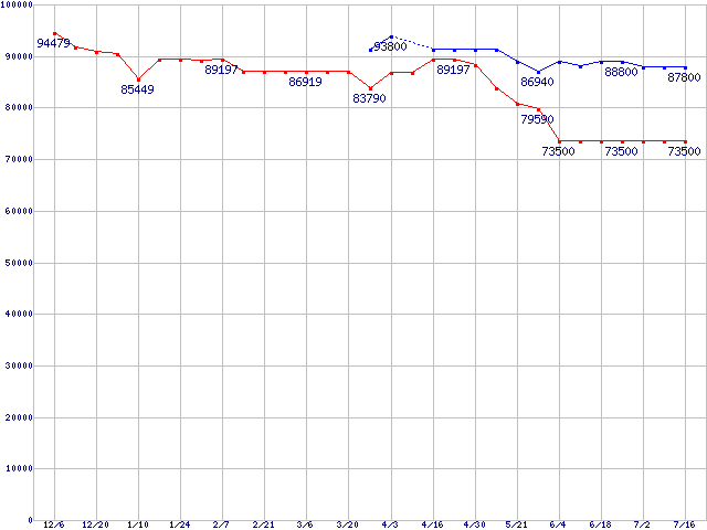 [↑前グラフ]: | Socket 754 (PGA,FSB 800MHz)の最安値推移 |