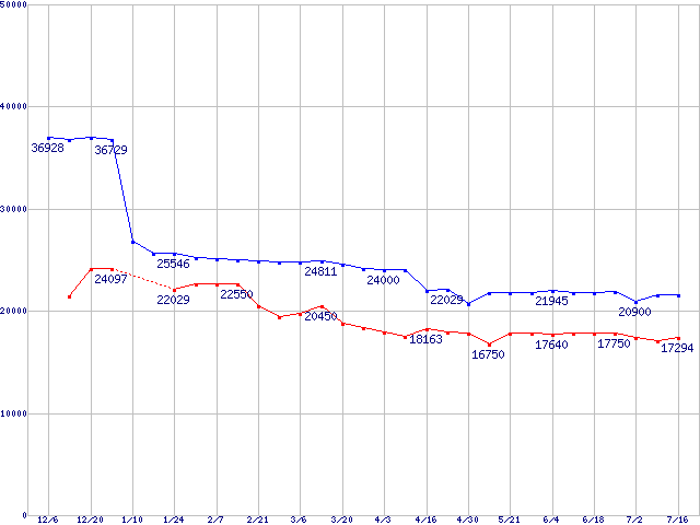| Socket A (OPGA,FSB 400MHz,L2 512KB,Barton)の最安値推移 |