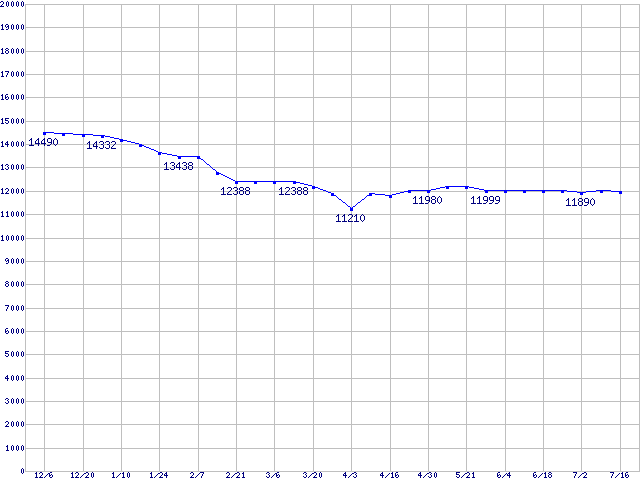 | [↑前グラフ]: | Socket A (OPGA,FSB 333MHz,L2 512KB,Barton)の最安値推移 |