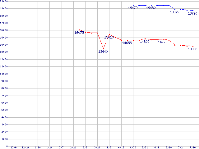 | [↑前グラフ]: | Socket 478 (FC-PGA2,FSB 533MHz,L2 512KB,Hyper-Threading,Northwood)の最安値推移 |