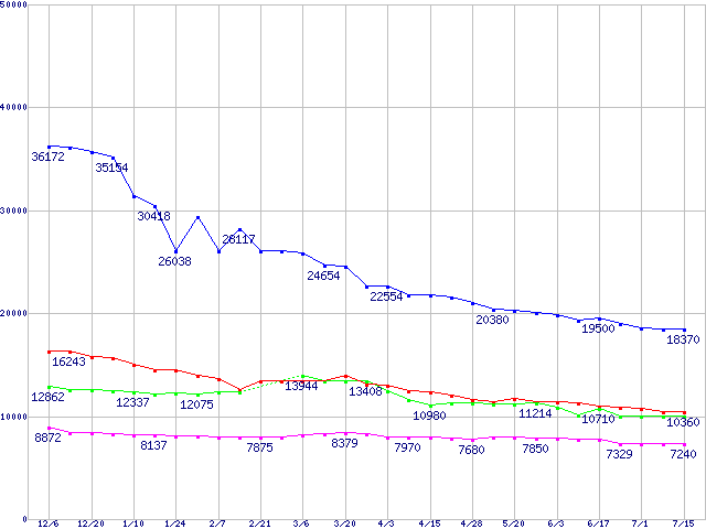 | [↑前グラフ]: | Deskstar 7K400 (7200rpm,SerialATA/150,FDB)の最安値推移 |