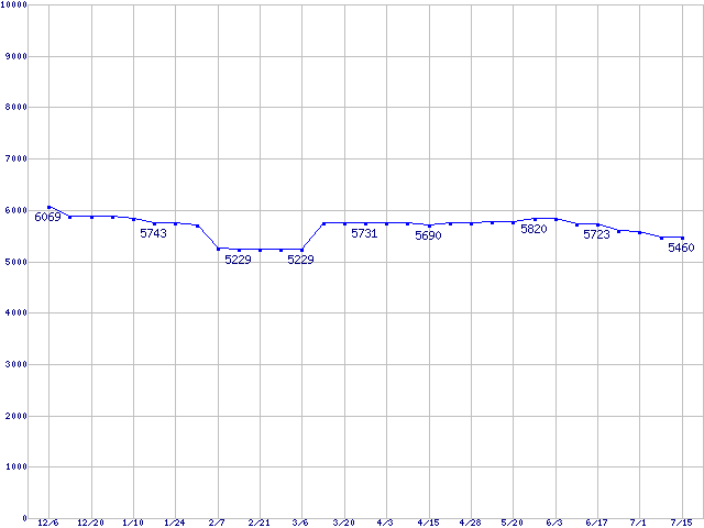 | [↑前グラフ]: | DiamondMax 16 (5400rpm,UltraATA/133,2MB,80GB/Platter,FDB)の最安値推移 |