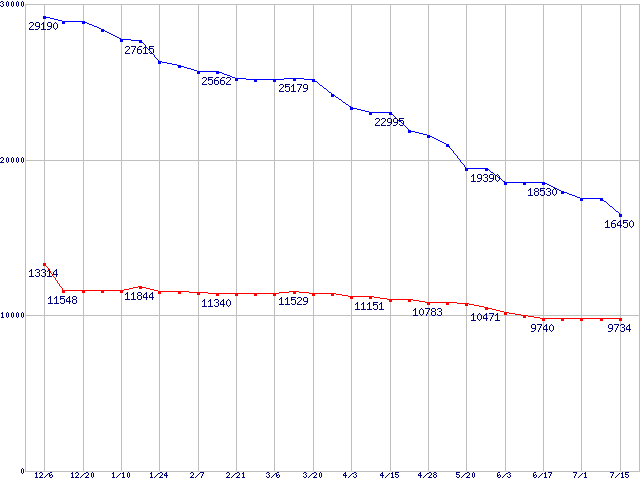 | [↑前グラフ]: | WD Raptor (10000rpm,SerialATA,8MB)の最安値推移 |