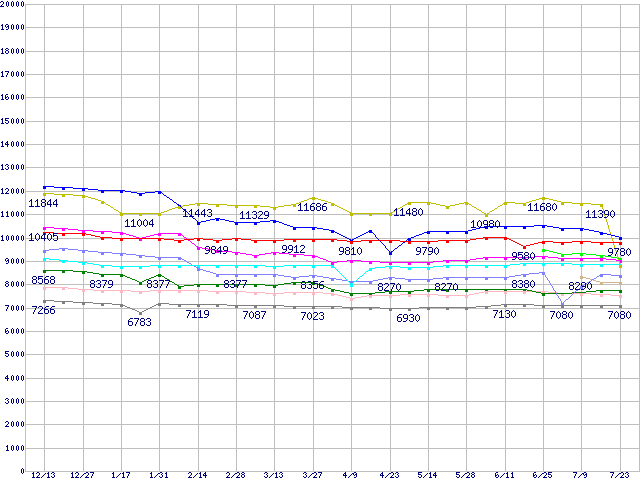 CPU主要製品(最安値1万円~2万円未満)の最安値推移