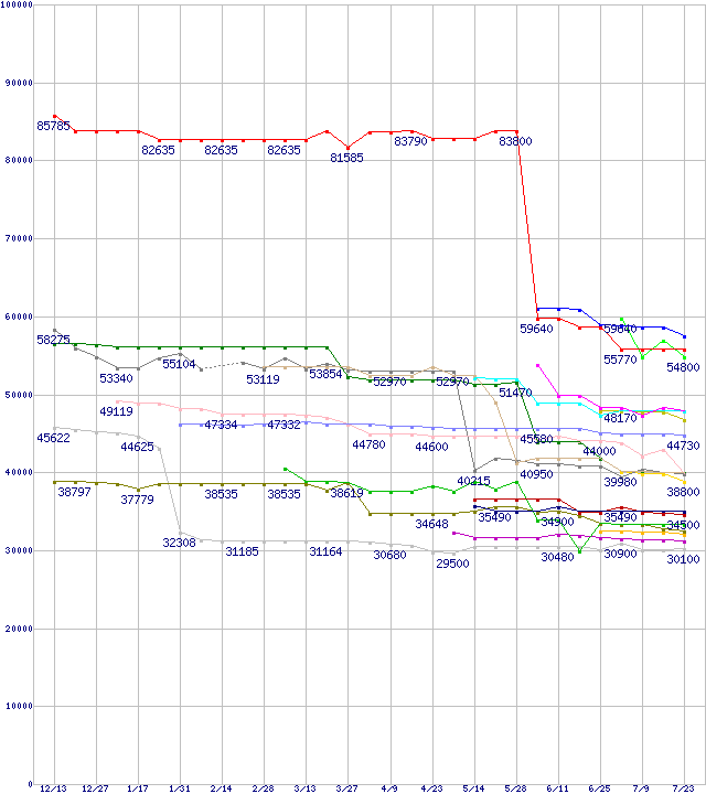 | [↓次グラフ]: | CPU主要製品(最安値6万円以上)の最安値推移 |