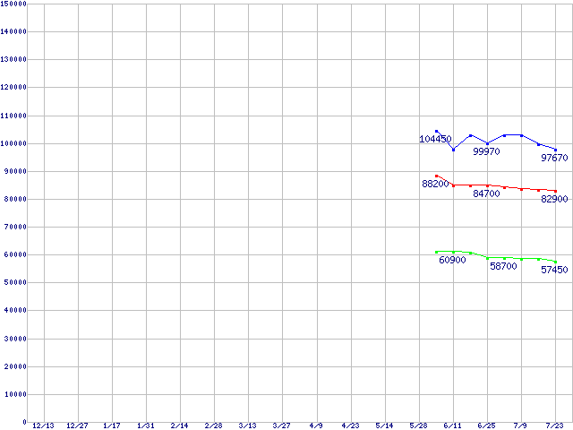 | [↑前グラフ]: | CPU主要製品(最安値6万円以上)の最安値推移 |