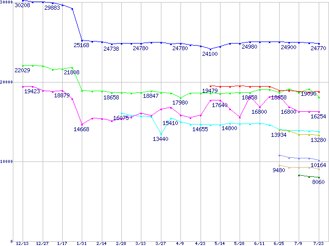 | ※製品名をクリックすると個別のグラフを表示します ※点線部は販売店が確認できなかった、または調査データがないことを示します | |