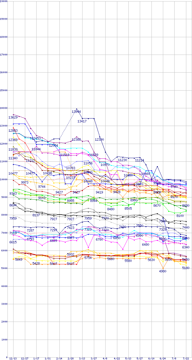 ※製品名をクリックすると個別のグラフを表示します ※点線部は販売店が確認できなかった、または調査データがないことを示します |