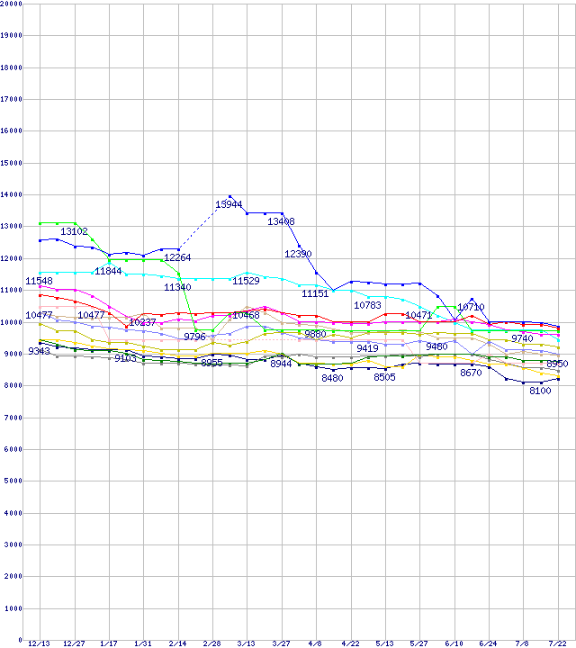 ※点線部は販売店が確認できなかった、または調査データがないことを示します