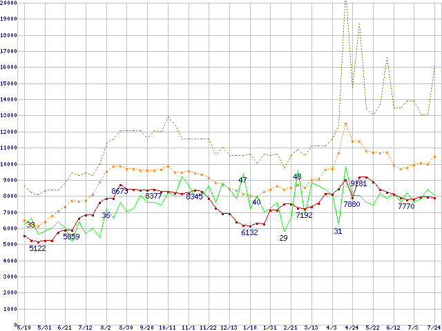 | ※このグラフは過去のデータも税率5%相当に調整した税込み相当額のグラフです。 税率変更や、総額表示方式導入(2004年4月)の影響は除いています。 | |||||||||||||||