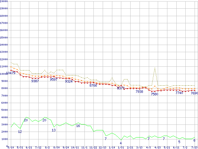 Socket A (OPGA,FSB 266MHz,L2 256KB,Thoroughbred)の最安値推移
