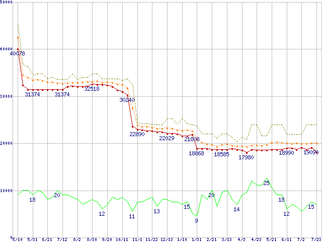 CPU主要製品(最安値1万円~2万円未満)の最安値推移