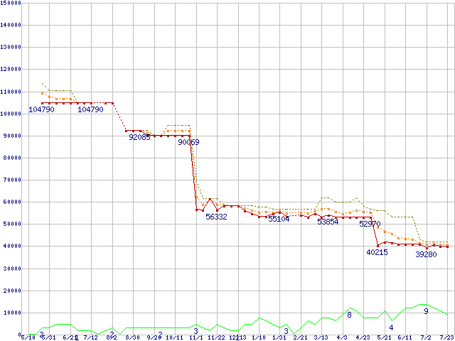 | Opteron 244(1.8GHz) リテールパッケージの価格推移 |