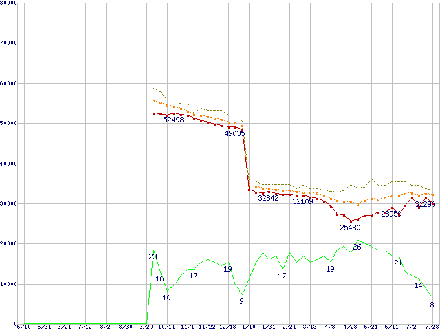 | Athlon 64 3200+(2GHz,L2 1MB) リテールパッケージの価格推移 |