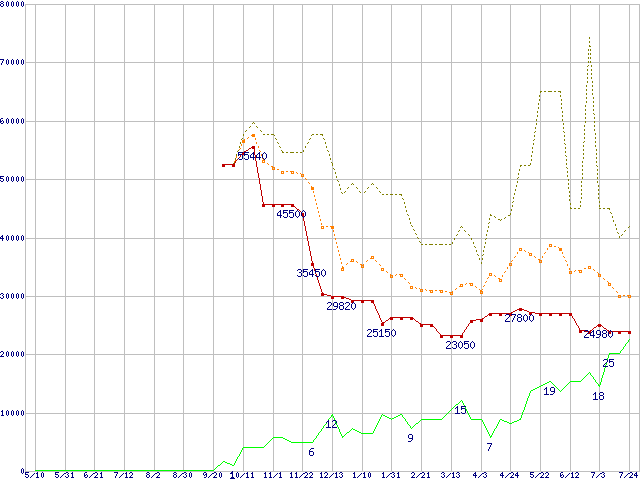 PC3200(DDR400) DDR SDRAM DIMMの最安値推移