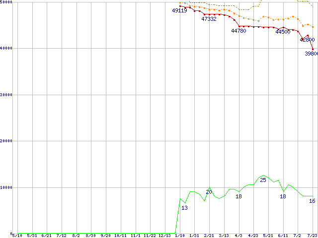 | Athlon 64 3400+(2.2GHz,L2 1MB) リテールパッケージの価格推移 |