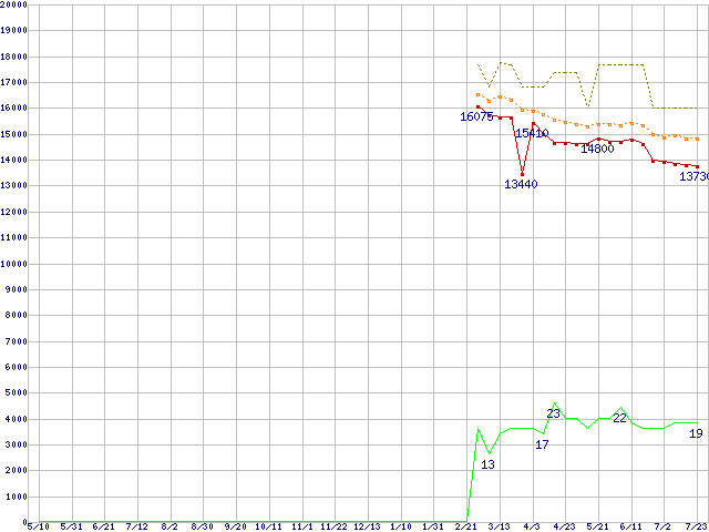 CPU主要製品(最安値1万円~2万円未満)の最安値推移