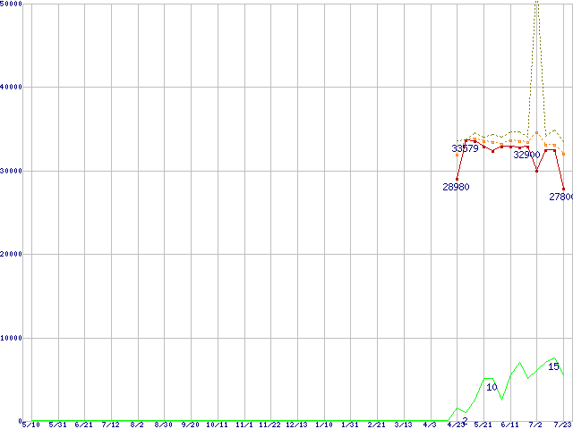 | Athlon 64 3200+(2.2GHz,L2 512KB) リテールパッケージの価格推移 |
