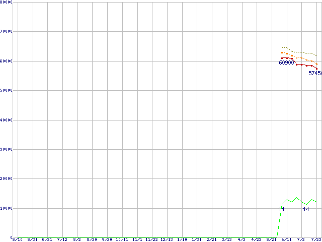 | Athlon 64 3500+(2.2GHz,L2 512KB) リテールパッケージの価格推移 |