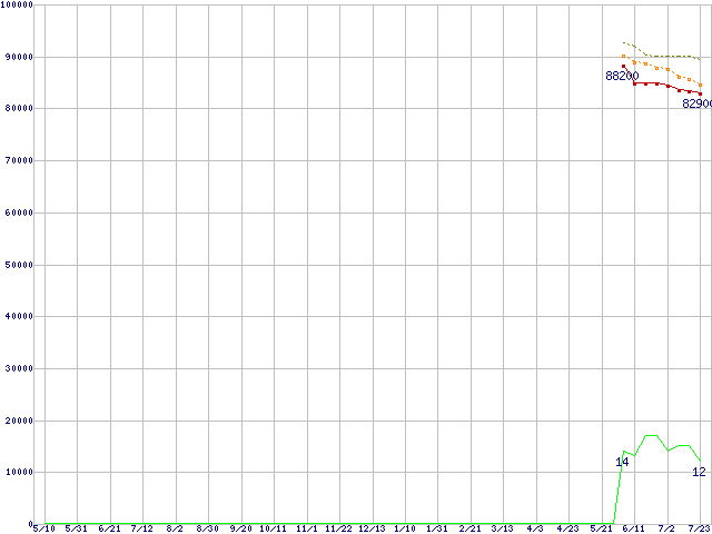 | Athlon 64 3800+(2.4GHz,L2 512KB) リテールパッケージの価格推移 |