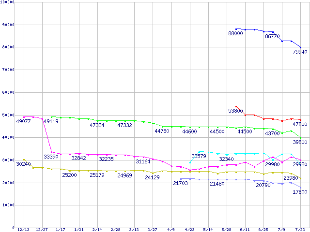 | [↑前グラフ]: | Socket 939 (PGA,FSB 1000MHz)の最安値推移 |