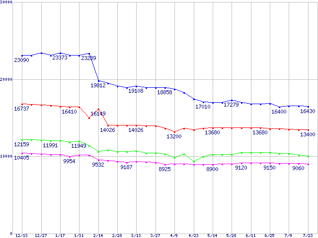 | [↑前グラフ]: | Socket A (OPGA,FSB 400MHz,L2 512KB,Barton)の最安値推移 |
