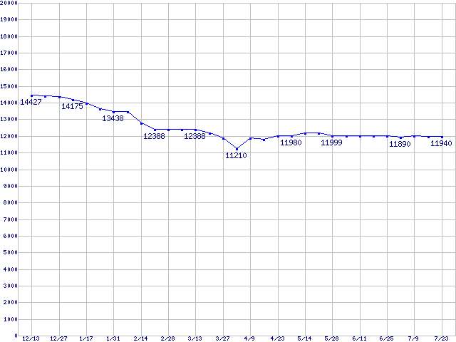 | [↑前グラフ]: | Socket A (OPGA,FSB 333MHz,L2 512KB,Barton)の最安値推移 |