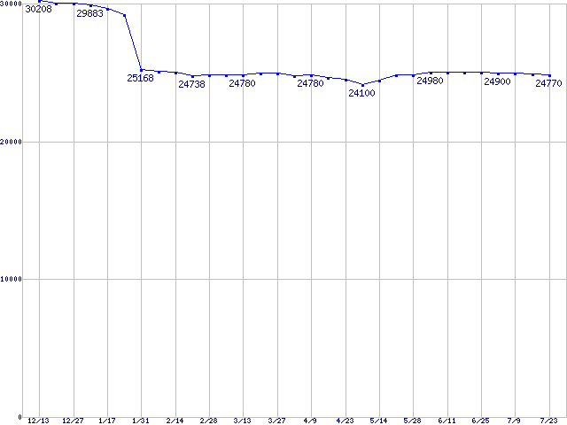 | [↑前グラフ]: | Socket 478 (FC-PGA2,FSB 800MHz,L2 512KB,Hyper-Threading,Northwood)の最安値推移 |