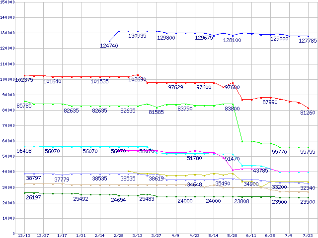 | [↑前グラフ]: | Socket 604 (FCBGA,FSB 800MHz,L2 1MB,Nocona)の最安値推移 |