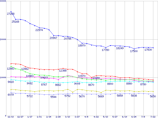 | [↑前グラフ]: | Deskstar 7K400 (7200rpm,UltraATA/100,FDB)の最安値推移 |