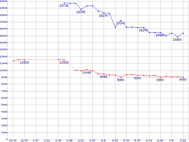 | [↑前グラフ]: | WD Caviar(Special Edition) (7200rpm,UltraATA/100,8MB)の最安値推移 |