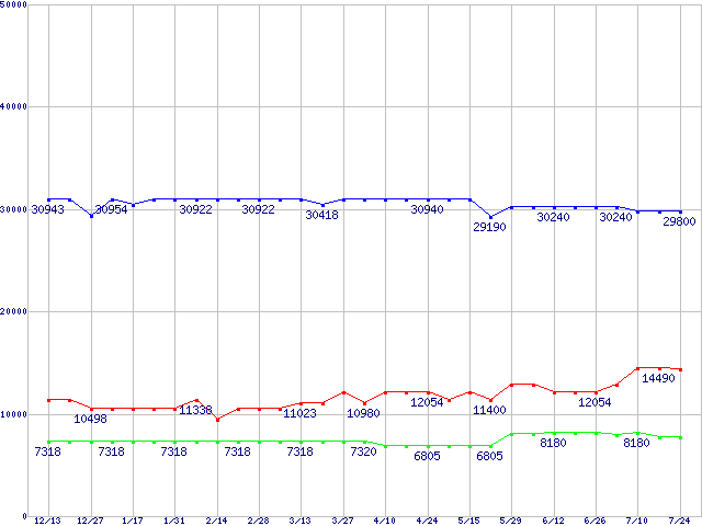 | [↑前グラフ]: | PC2700(DDR333) DDR SDRAM DIMMの最安値推移 |