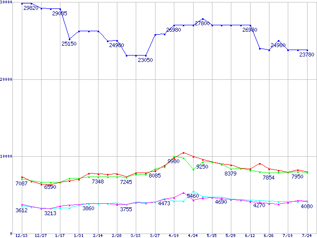 | ※製品名をクリックすると個別のグラフを表示します ※点線部は販売店が確認できなかった、または調査データがないことを示します | |