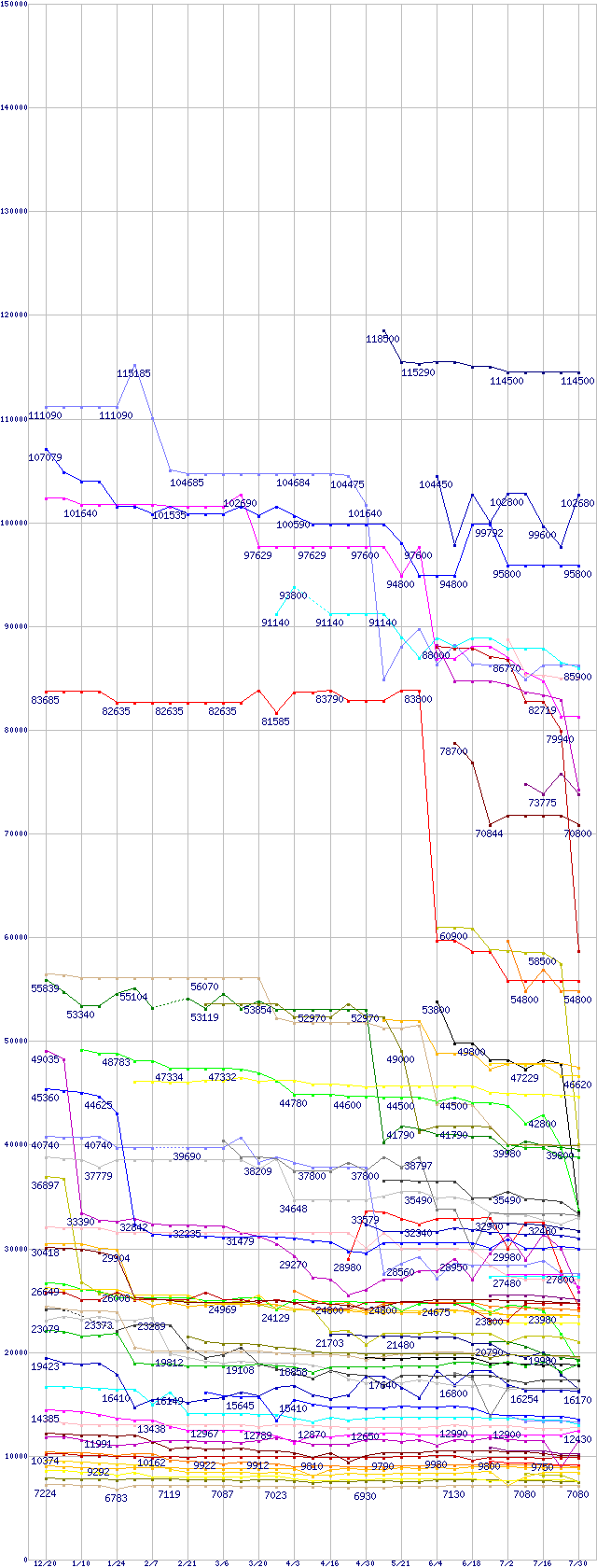 ※製品名をクリックすると個別のグラフを表示します ※点線部は販売店が確認できなかった、または調査データがないことを示します |