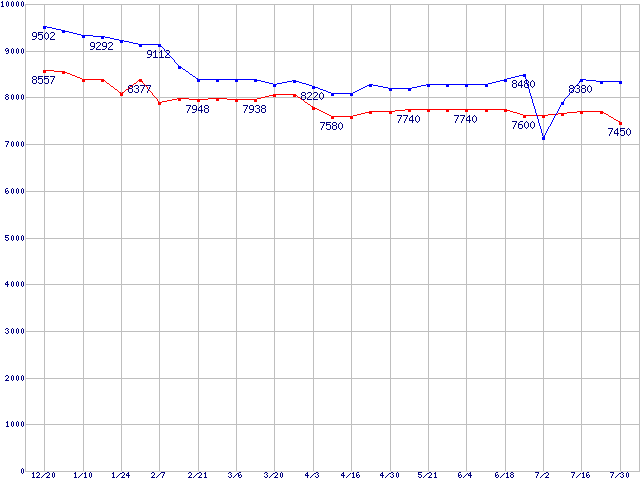 | [↑前グラフ]: | Socket 754・FSB 800MHzの最安値推移 |