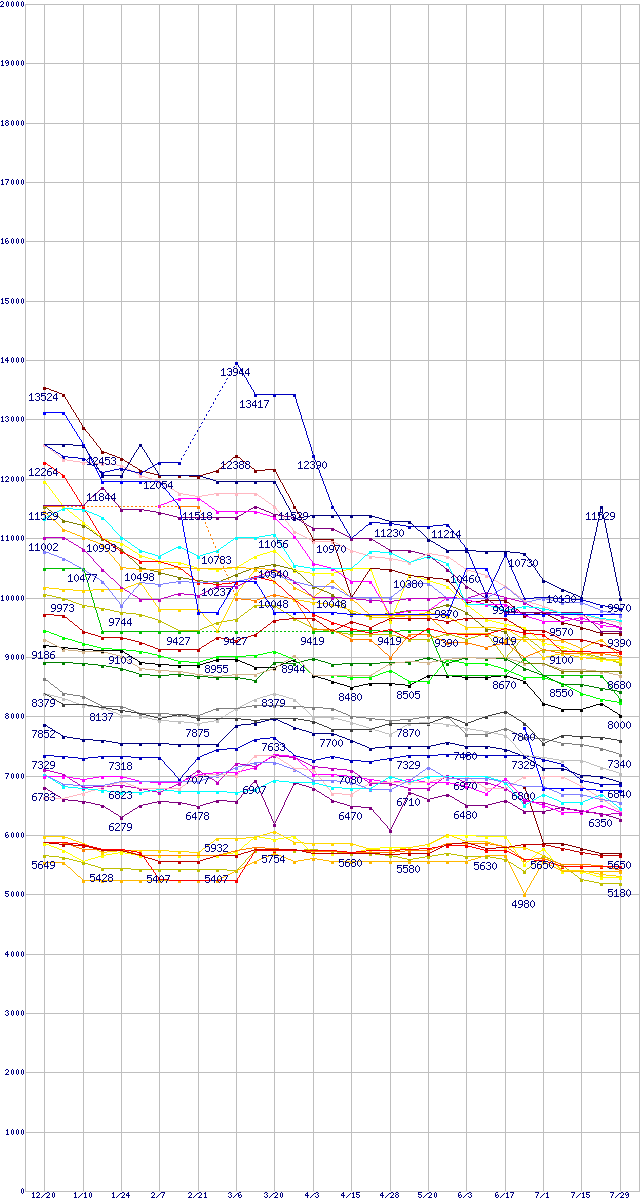 ※製品名をクリックすると個別のグラフを表示します ※点線部は販売店が確認できなかった、または調査データがないことを示します |
