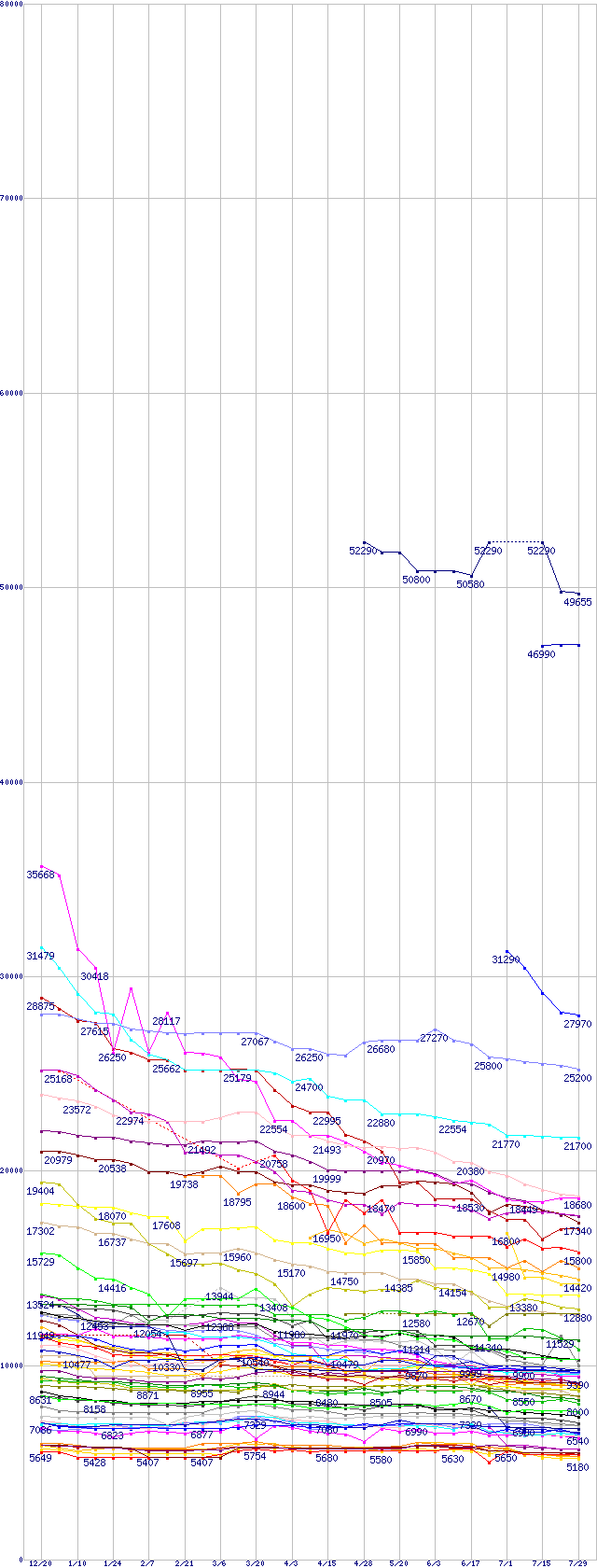 ※製品名をクリックすると個別のグラフを表示します ※点線部は販売店が確認できなかった、または調査データがないことを示します |