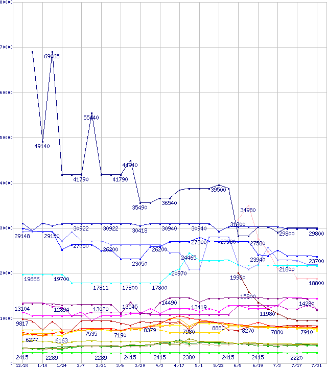 メモリ主要製品の最安値推移