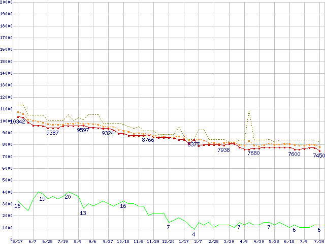 Socket A (OPGA,FSB 266MHz,L2 256KB,Thoroughbred)の最安値推移