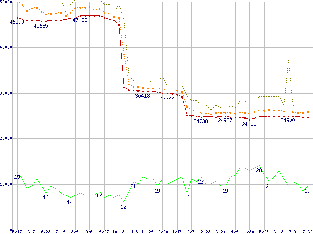 Socket 478 (FC-PGA2,FSB 533MHz,L2 512KB,Hyper-Threading,Northwood)の最安値推移