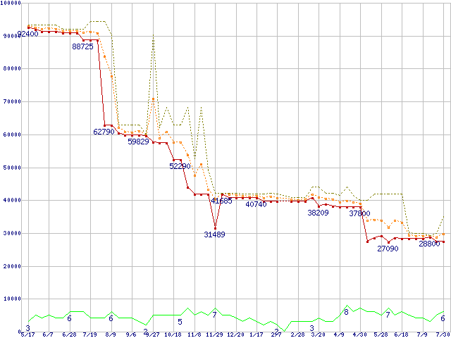 | Opteron 242(1.6GHz) リテールパッケージの価格推移 |
