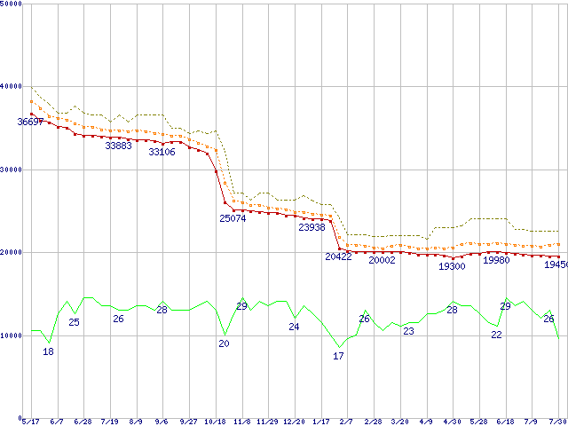 Socket 478 (FC-PGA2,FSB 800MHz,L2 512KB,Hyper-Threading,Northwood)の最安値推移