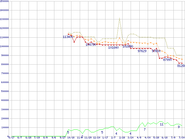 | Xeon 3.2GHz /L3 1MB(FSB533) リテールパッケージの価格推移 |
