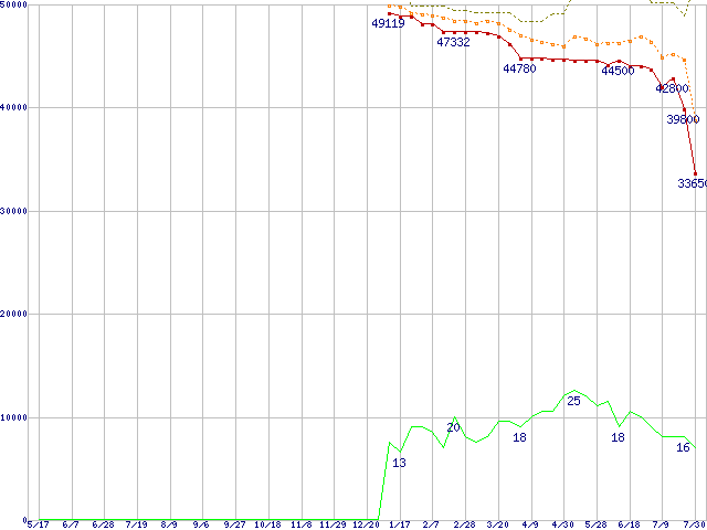 | Athlon 64 3400+(2.2GHz,L2 1MB) リテールパッケージの価格推移 |